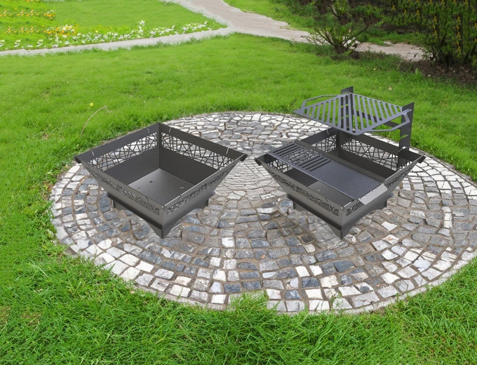 29-Inch Square Fire Pit Grill with Ornam...